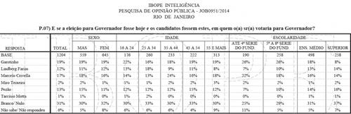 O Ibope divulgou há pouco a íntegra de pesquisa encomendada pela Firjan, para as eleições no estado do Rio. Recortei algumas tabelas e gráficos e faço uma breve análise sobre cada um.