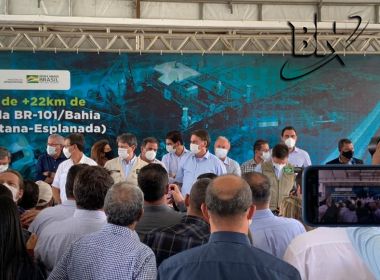 O presidente Jair Bolsonaro (sem partido) apareceu de máscara na manhã desta segunda-feira (26), durante o evento que inaugura a duplicação de um trecho de 23 km da BR-101, entre os municípios de Feira de Santana e de Conceição do Jacuípe.