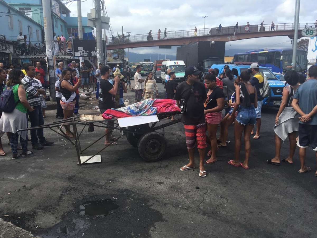 Uma das vítimas, um professor, morreu na Nova Holanda no fim da madrugada e moradores fecham a Avenida Brasil com o seu corpo em um carrinho; ao menos outras quatro pessoas foram baleadas. Procurada, a PM ainda não se pronunciou sobre mortos e feridos