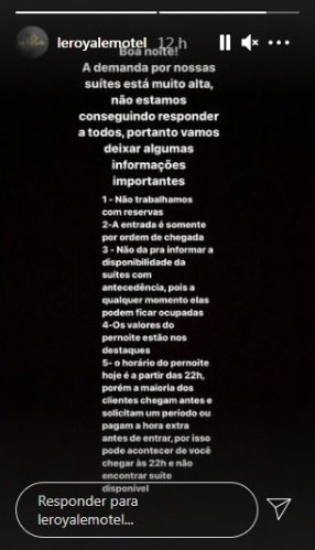 Em seguida, por volta das 21h, o Le Royale fez um esclarecimento para destacar que a demanda estava alta e a equipe enfrentava dificuldades para responder a todos os clientes.