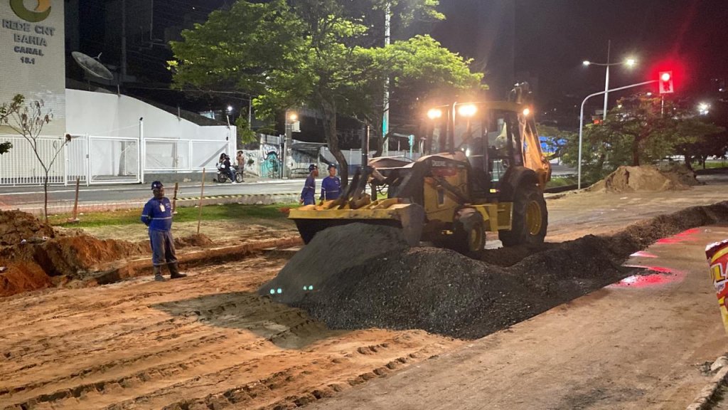 Menos de 24h do rompimento, Embasa realiza últimos ajustes em adutora no trecho da Garibaldi; trânsito ainda não está liberado